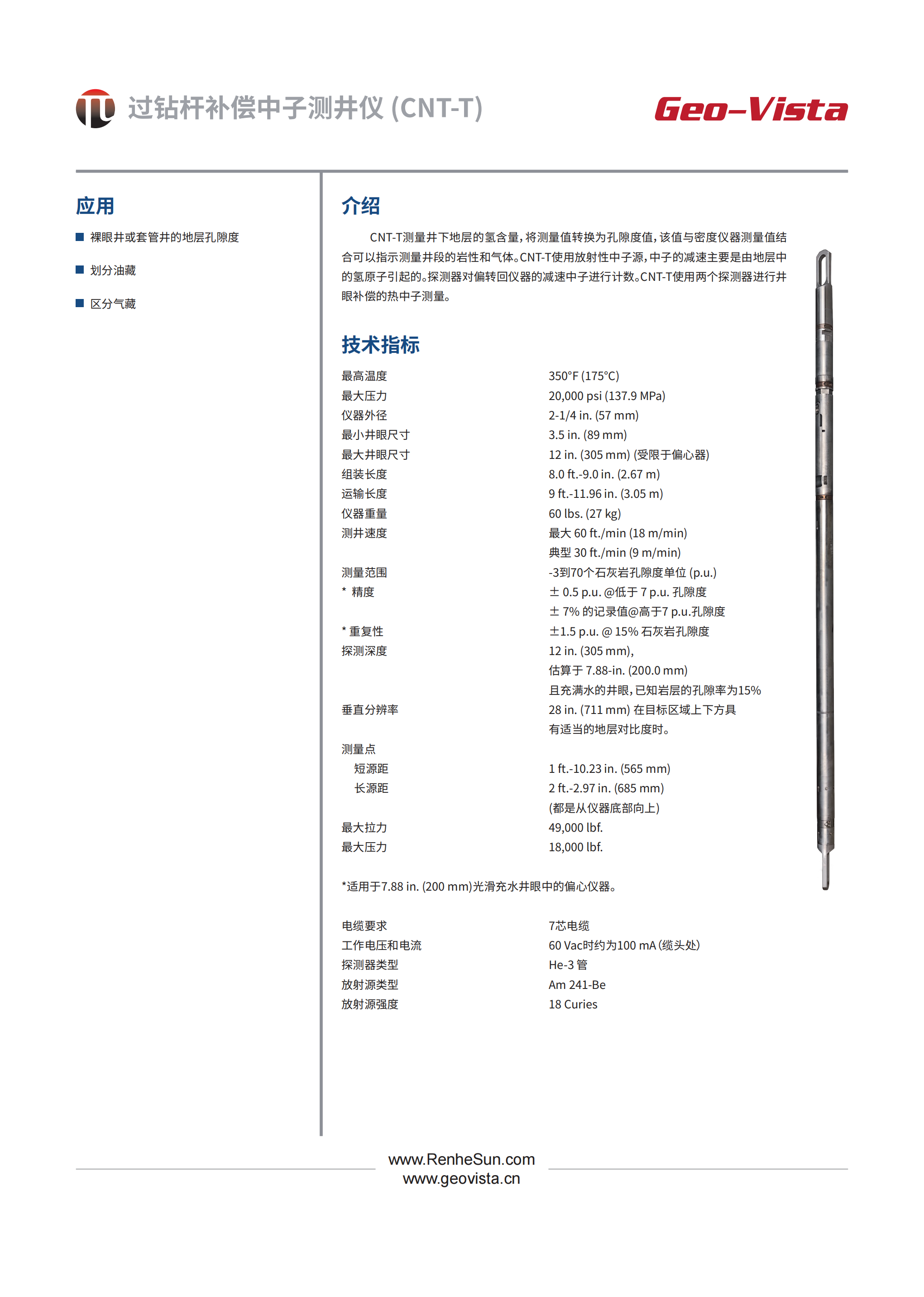 过钻杆补偿中子测井仪(CNT-T)