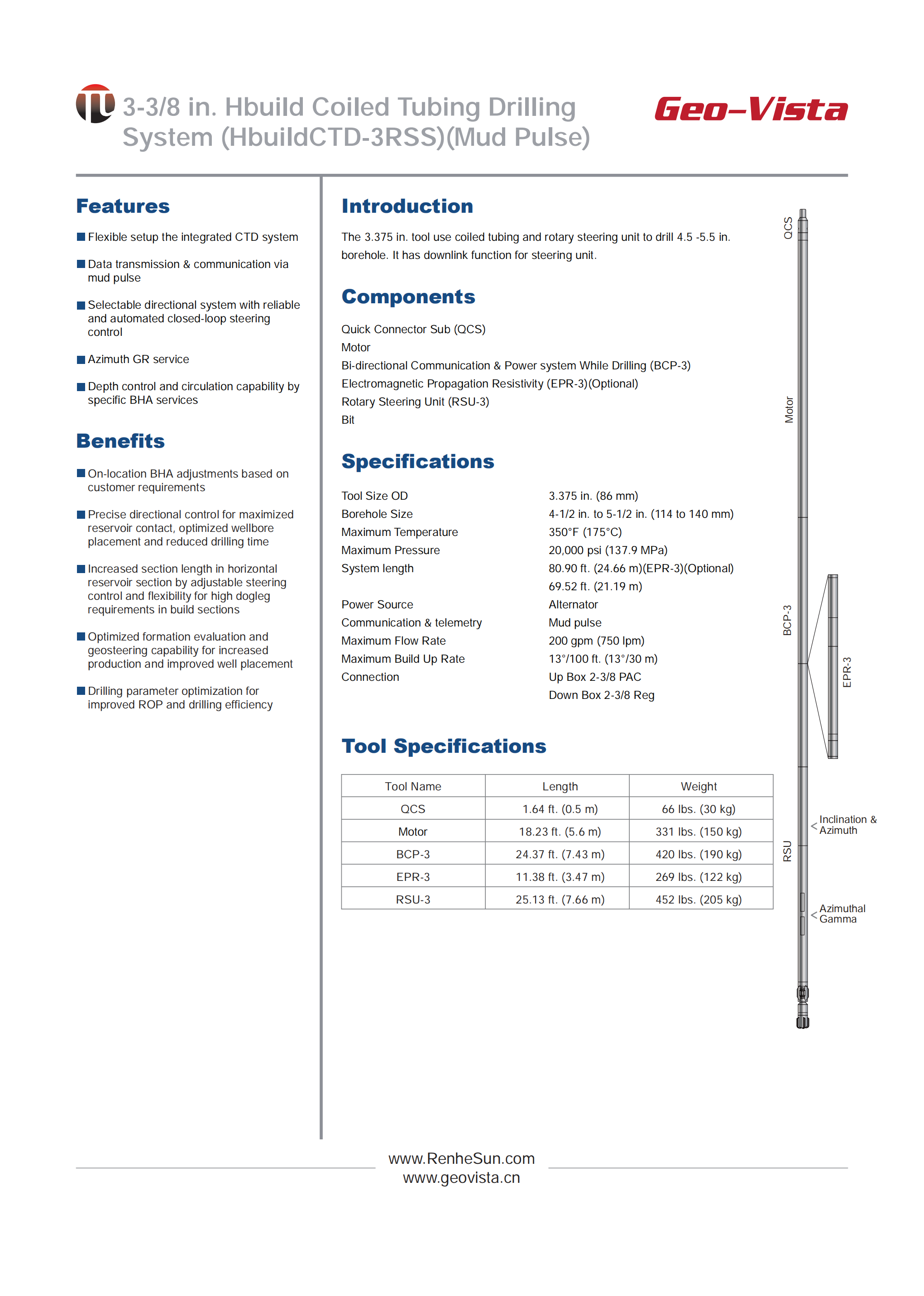 3-3/8 in. Hbuild Coiled Tubing Drilling System (HbuildCTD-3RSS) (Mud Pulse)