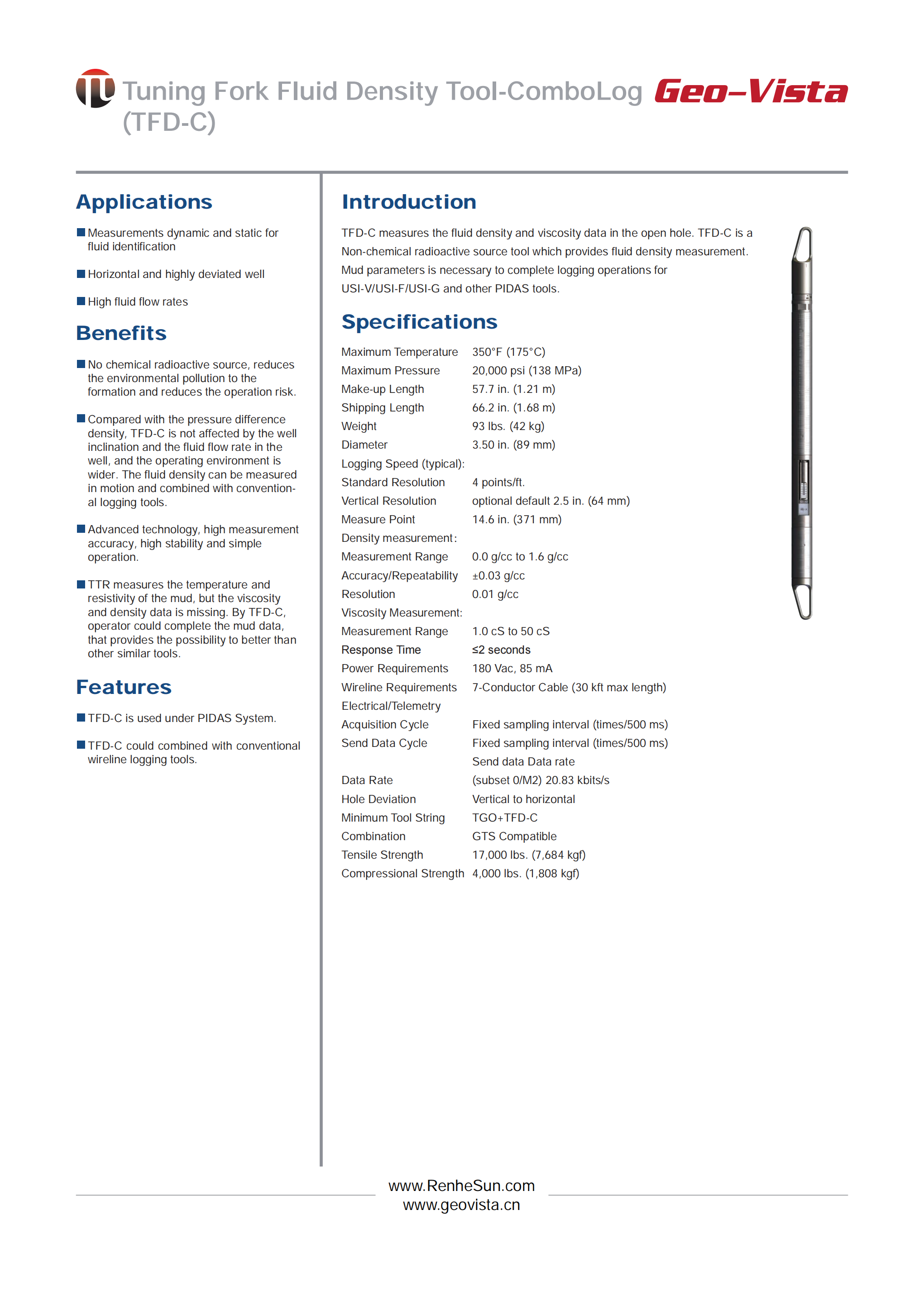 Tuning Fork Fluid Density Tool-ComboLog (TFD-C)