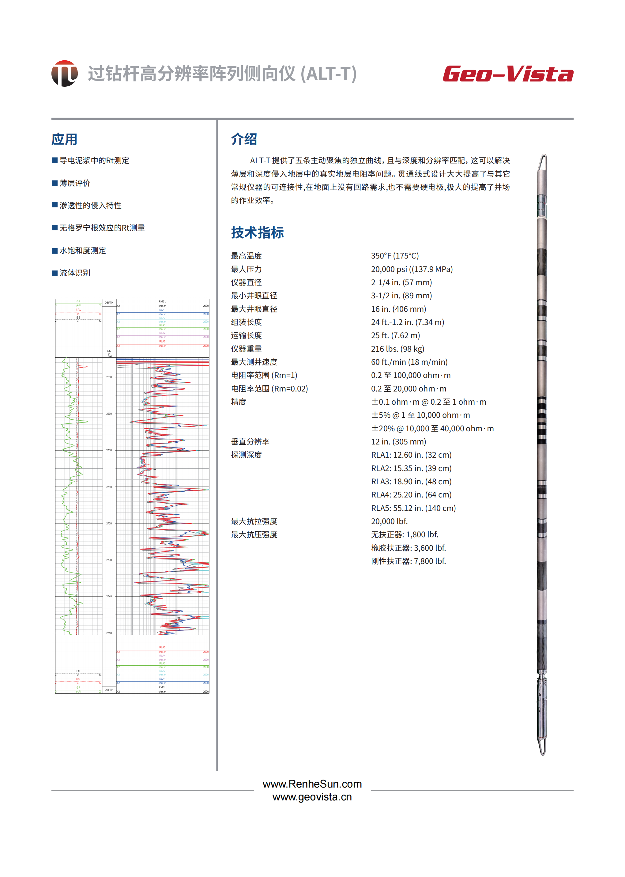 过钻杆高分辨率阵列侧向仪(ALT-T)