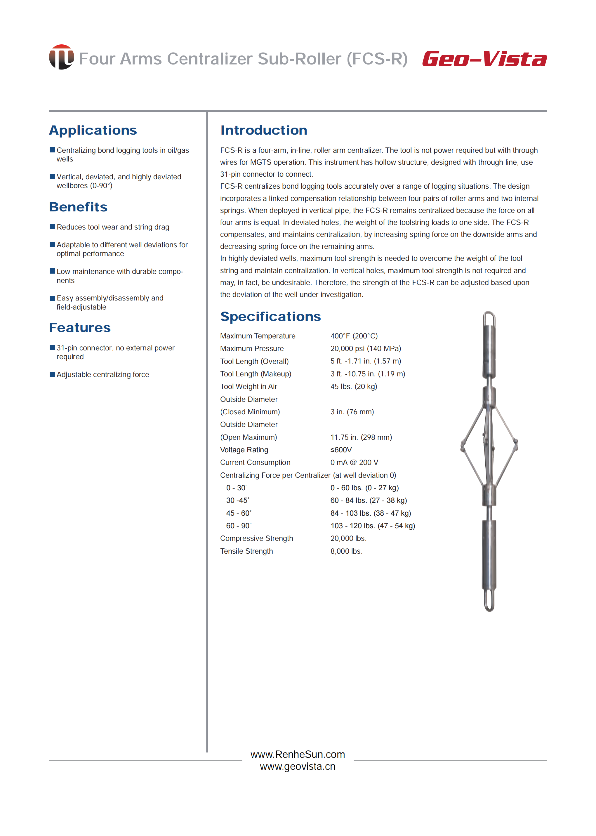 Four Arms Centralizer Sub-Roller (FCS-R)