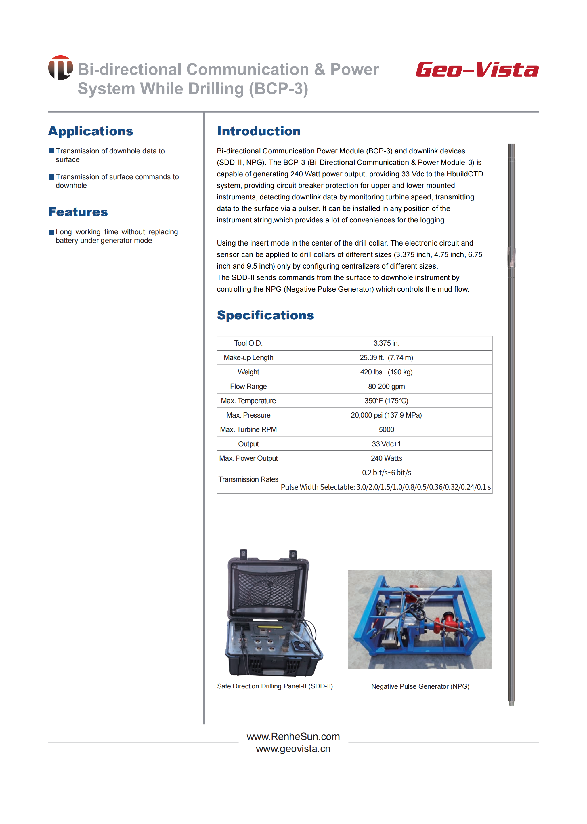 Bi-directional Communication & Power System While Drilling (BCP-3)
