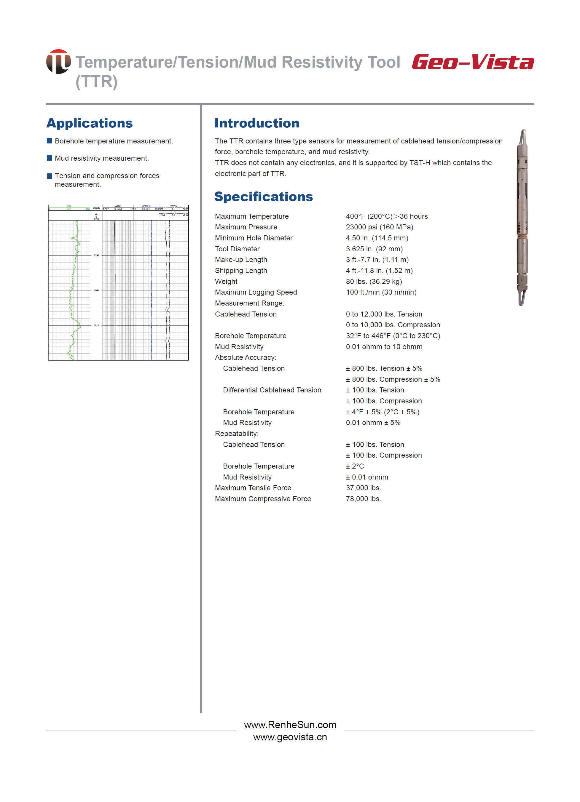 Temperature/Tension/Mud Resistivity Tool (TTR)