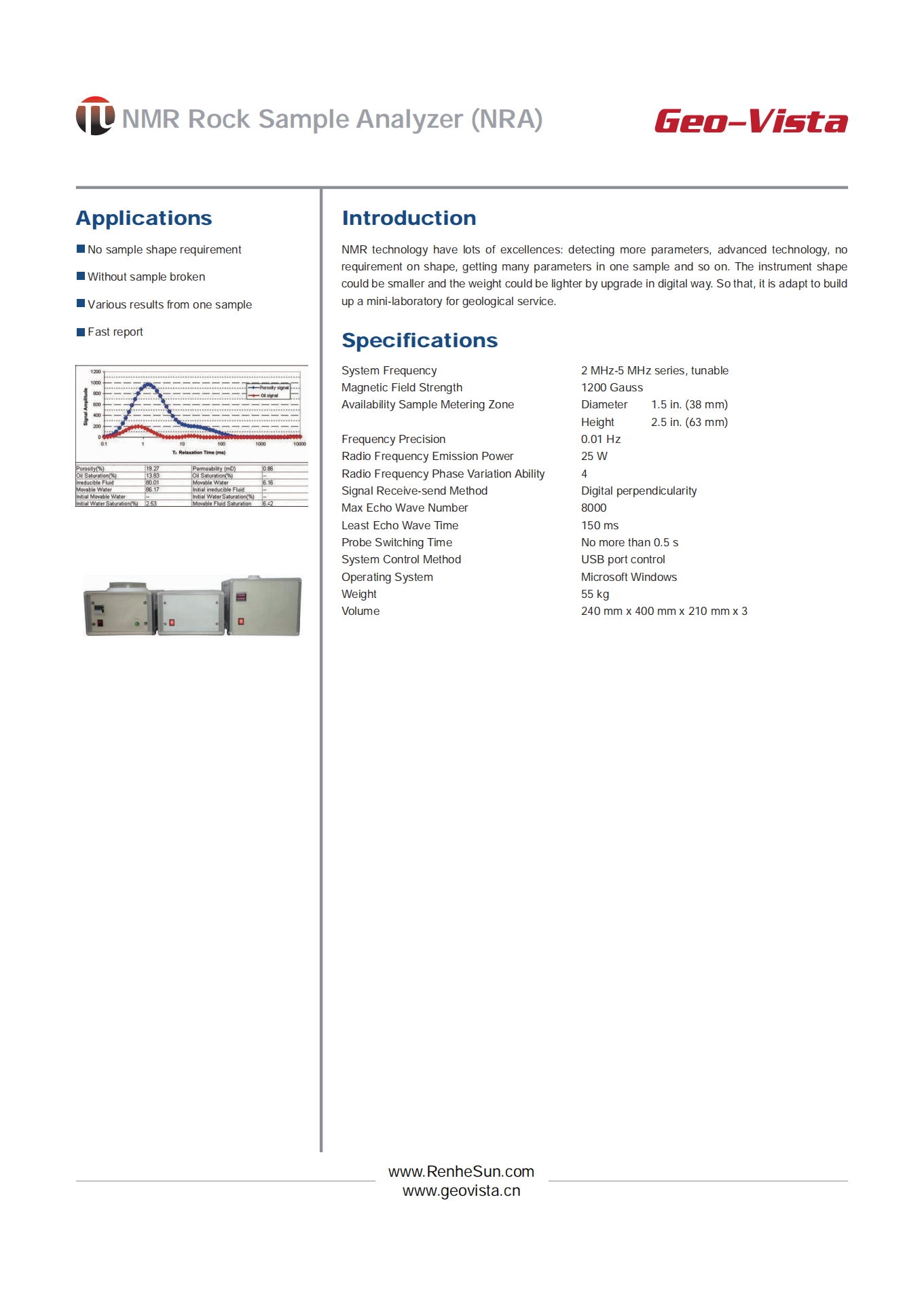NMR Rock Sample Analyzer (NRA)